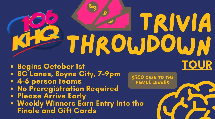 Join 106 KHQ as we trek across Northern Michigan this fall for the Trivia Throwdown Tour!